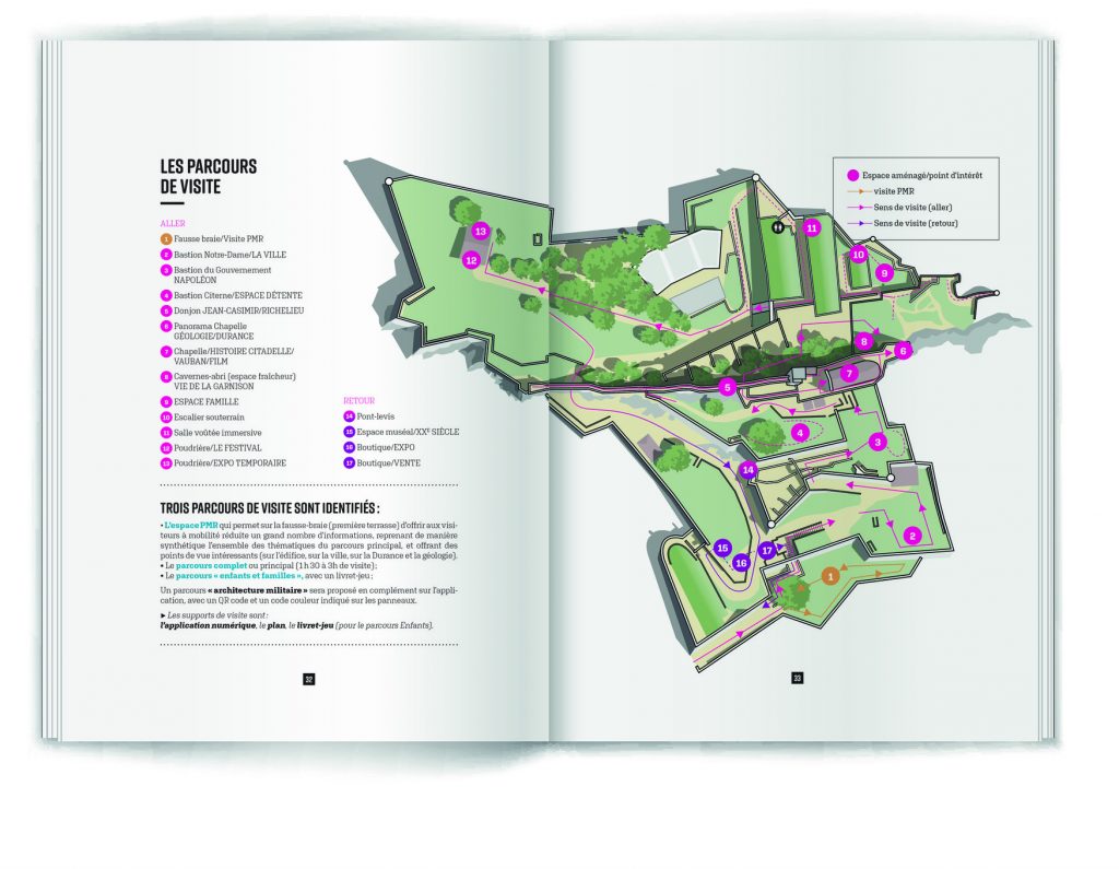 La muséographie proposée conjugue différents supports et médias, pour optimiser les espaces et valoriser l’ensemble des atouts du site. Ceci se traduit par la création de parcours (parcours principal, parcours Enfants et Familles, parcours PMR) et garantit aux visiteurs découvertes et émotions : richesse des contenus et des supports de médiation, esthétisme global, expériences et confort de visite.